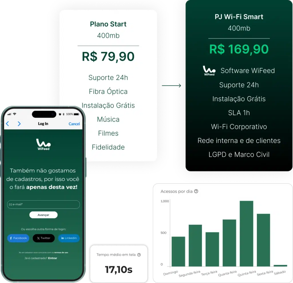 Trabalhamos com modelo de licenças recorrentes onde cada licença vale para 1 AP. Você define a forma de repasse e como vai embutir o WiFeed nos seus planos.